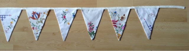 Do you remember that bundle of vintage lovelyness I got at a table top sale the other day? Well, I mentioned that I had a cunning plan of what to do with it, and here it is.... I was going to chop it all up and make some bunting!