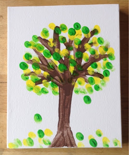 I am always looking for new things to offer for my workshops, especially the children's ones where I like to have what is on offer open to all abilities. So one of my new activities this summer is a Fingerpainted Tree canvas.